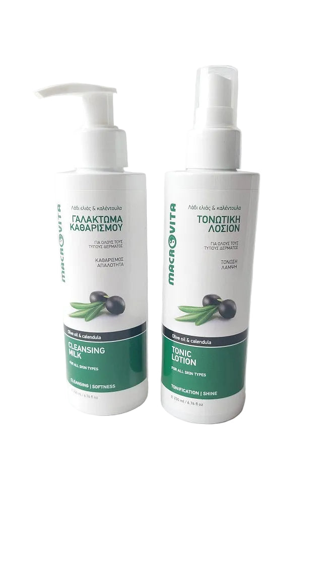 Tonic Lotion: Toner, revitaliserer og gjenoppretter hudens balanse uten å forårsake tørrhet. Samtidig fjerner den urenheter og rester av rensemelk, og etterlater huden ren og forfrisket. Inneholder olivenolje og ringblomst.