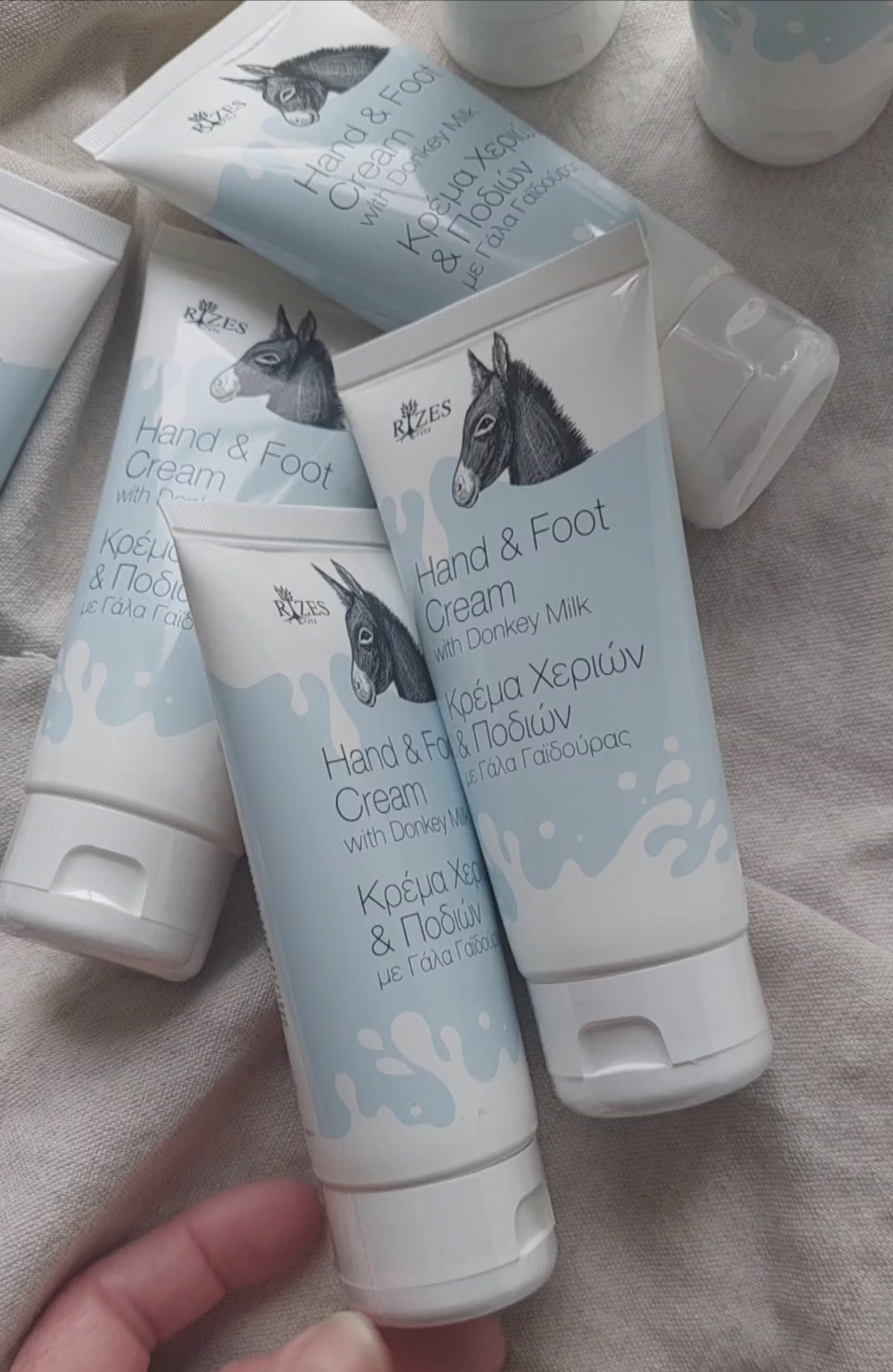 Hånd- og fotkrem med eselmelk for dyp hydrering av tørre hender, samt huden på føttene.